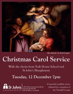 A beautiful candlelit carol service with choirs from York House School and St John's Shaughnessy. Donations will be accepted for the...