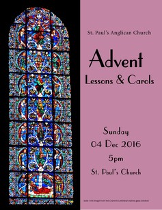 You are invited to join us Sunday Dec 4, 2015 5pm in the church Advent Lessons and Carols featuring St. Paul’s Choir under the...