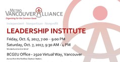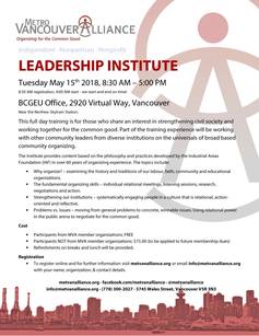 There is a Leadership Institute with the civil society organization Metro Vancouver Alliance (MVA) coming up the evening of Friday...