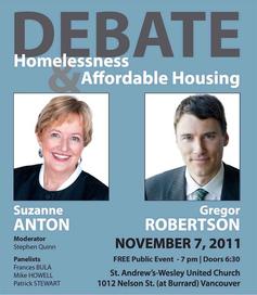 Free Public Event: Debate on Homelessness and Affordable Housing Mayoral Candidates: Gregor Robertson and Suzanne...