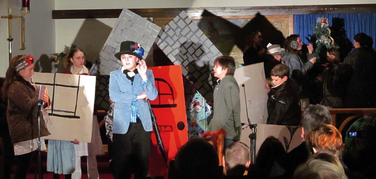 It was clear from the successful production of Joseph in May 2013, that among the inter-generational cast, there was a talented group of young performers who had built an energetic, supportive community who wanted to work together on a production specifically designed for them. Claire Rice, who played the Narrator in Joseph and teaches theatre to young people, worked alongside Rev. Andrew Halladay to envision a musical production for Christmas based on the classic story by Charles Dickens. The script was written by Phil Colvin, and featured five brand new songs written by Rev. David Taylor.
